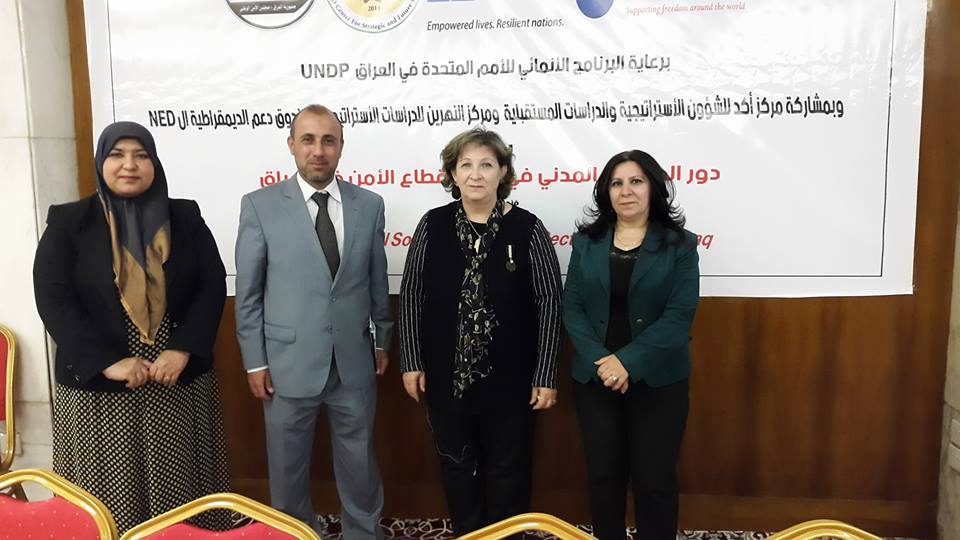 بتاريخ10/3/2016 شارك معهد المراة القيادية مؤتمر (دور المجتمع المدني في اصلاح القطاع الامني في العراق ) في فندق الرشيد برعاية البرنامج الانمائي للامم المتحدة في العراق UNDP وبمشاركة مركز اكد للشؤون الستراتيجية والدراسات المستقبلية ومركز النهرين للدراسات الستراتيجية وبدعم المعهد الديمقراطي ال NED .