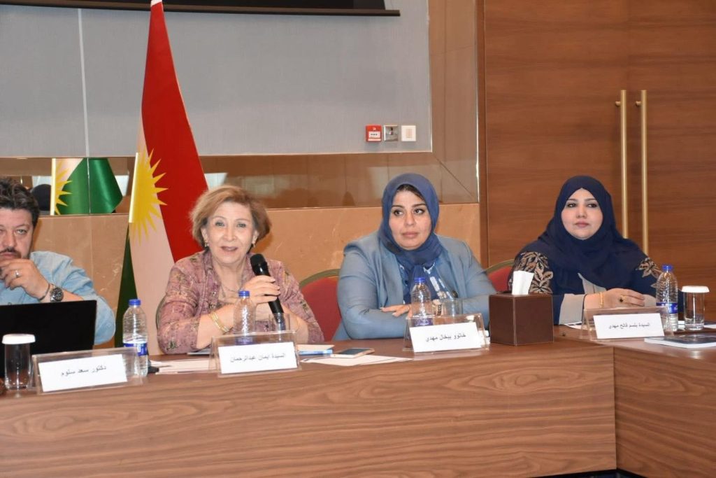 • الكلمة الافتتاحية والتعريف بمبادرة حان الوقت لنساء العراق قدمتها السيدة خانم لطيف رئيسة منظمة أسودا ورئيسة المبادرة.